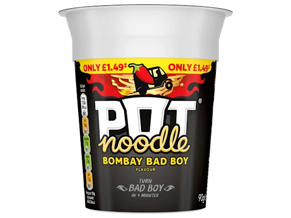 Noodles in a chicken and mushroom flavour sauce with vegetables and a little sachet of soy sauce. Hungry but short on time? Try the nation’s favourite instant noodle brand*, Pot Noodle. Now, in a King size version for King size hunger. King Pot Noodle Chicken & Mushroom 114 g features our classic noodles in a chicken and mushroom flavour sauce with vegetables and a little sachet of soy sauce. Sounds delicious, right? Plus, it’s dead easy to make and it only takes 4 minutes, so even if you aren’t a master chef, you can make it. If you’re hungry and looking for a quick, convenient and tasty solution, we’ve got the noodles for you. Stir it up! How to make it yourself? It’s simple and quick. Rip off the lid. Whip out the sachet. Add boiling water to fill level and re-cover with the lid. Leave alone for 2 minutes, then give it a stir before leaving for another 2 minutes. Finally, give it another stir as you add the pot noodle flavour sachet and dig in! Make sure to seize your opportunity and strike while the pot’s hot – do not reheat. Don’t forget to recycle the packaging – the lid and pot are both recyclable. Both cleverly convenient and deviously delicious, our mushroom and chicken noodles have none of that artificial colour or preservative stuff and are suitable for vegetarians. Eat them up with NO worries. *Nielsen Retail Measurement Service for the Mini Meals – Pot snacks segment for the 52-week period ending 16/08/2022.